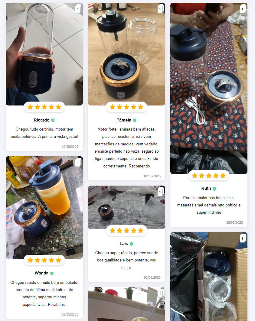 Comprei esse liquidificador portátil para levar para o trabalho e estou impressionada com a qualidade do produto.