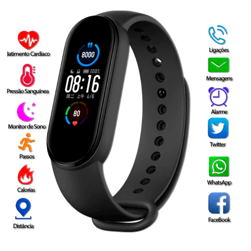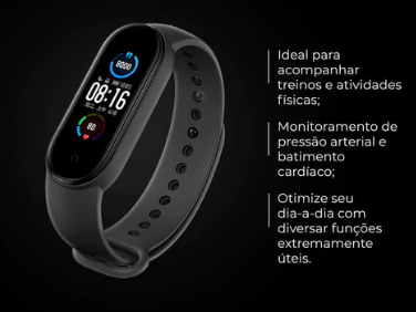 O Relógio Inteligente Smart Watch -  MI Band é um relógio essencial para você que cuida da sua saúde, que faz questão de ter o controle de seu corpo a todo momento. Ele é equipado com uma imensidade de funcionalidades muito úteis que podem, literalmente, salvar sua vida e, sem dúvidas, proporcionar mais qualidade de vida e praticar esportes.